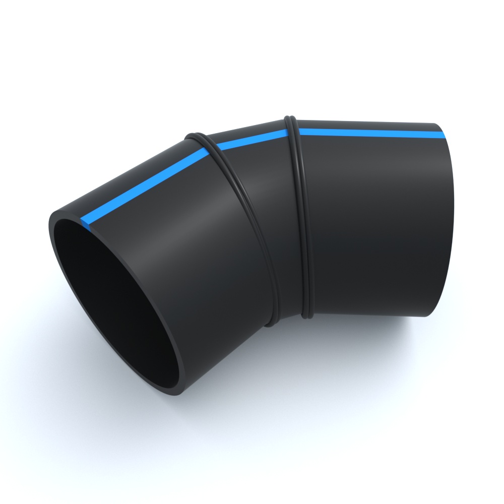 Отвод сварной ПНД 45º 450x310x439x260 мм SDR-13,6 выполняет функцию создания углов при строительстве трубопроводов любой сложности